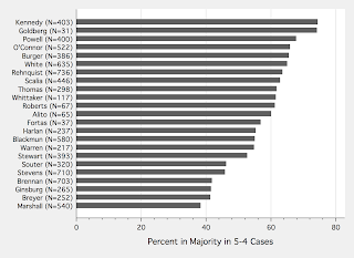 As of the end of the 2008 term, it appears that Justice Kennedy has been in the majority in a higher percentage of 5-4 decisions than any other Justice appointed since 1953. With little doubt, he retains his super median status. More on the Detention Front